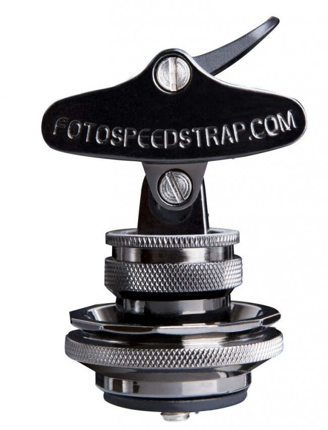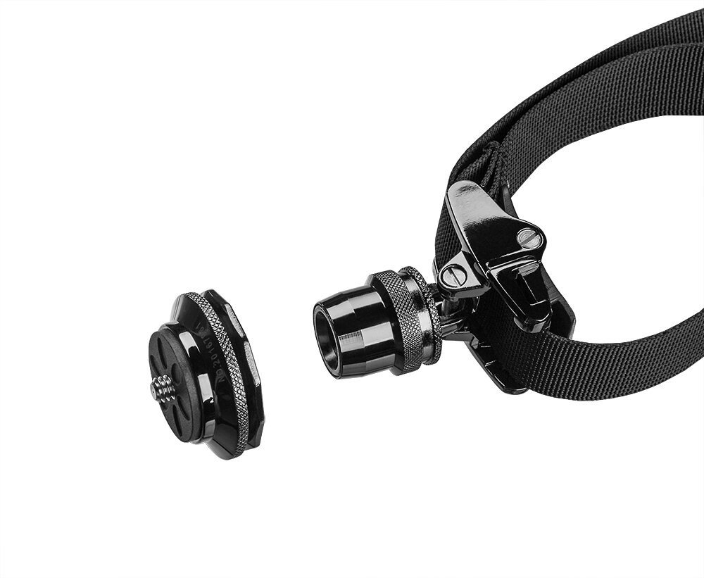Quick release connector om uw camera snel los te koppelen van de schouderriem.