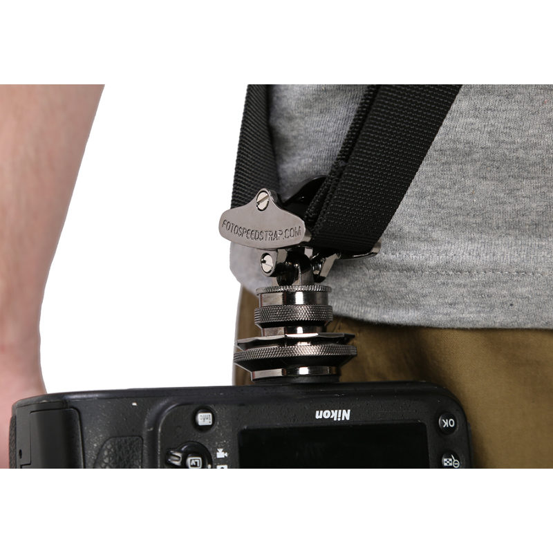 Wat de Fotospeed F7 Jaguar ook handig maakt is de connector die u gebruikt om uw camera aan de schouderriem vast te maken. Deze connector is met een simpele druk op een knop los te koppelen van de riem en is zo vormgegeven dat deze Arca-Swiss compatibel is. U kunt uw camera dus gemakkelijk en snel op een statiefkop bevestigen zonder dat u de connector los hoeft te draaien.