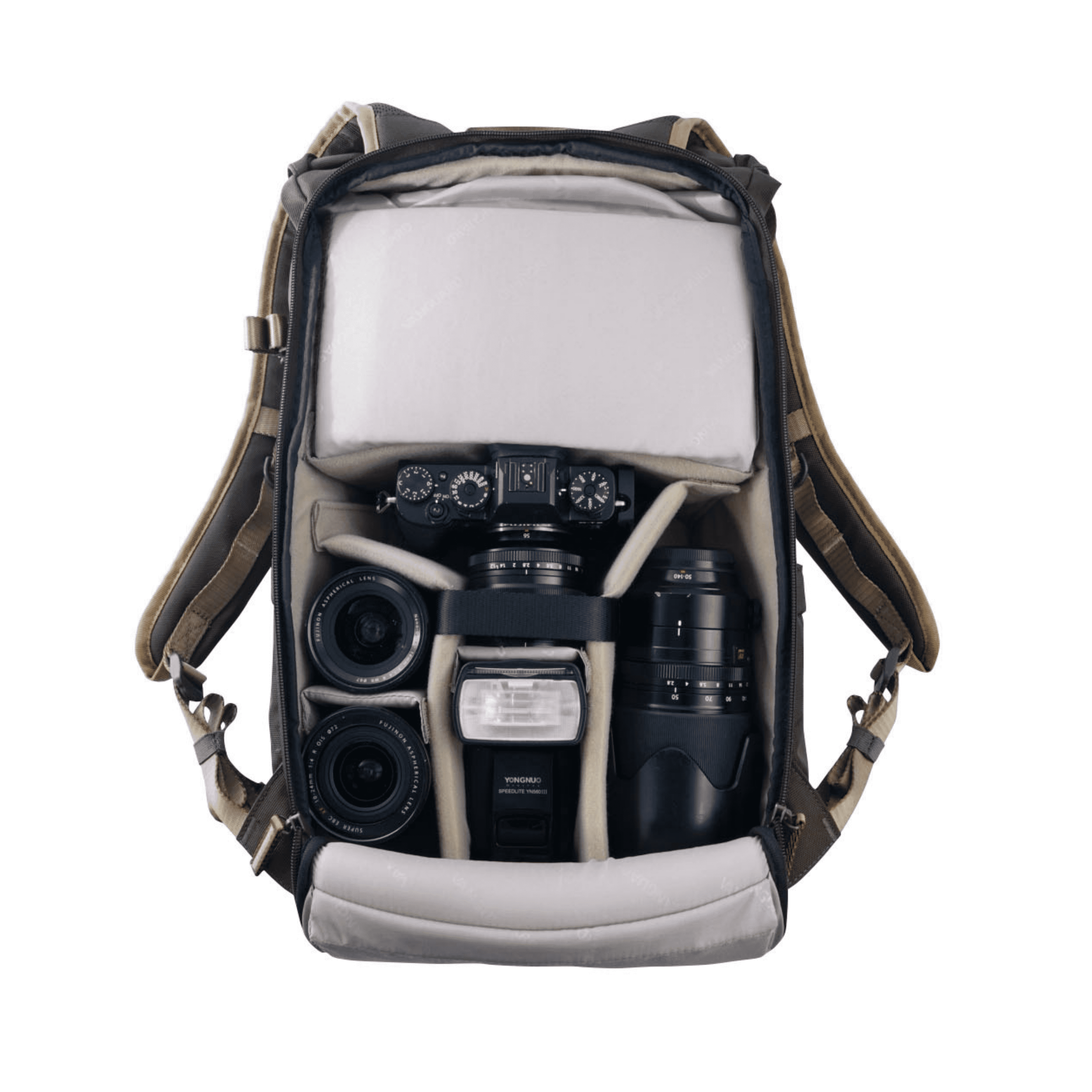 De Vanguard VEO GO 46 in de kleur kaki groen is een rugzak die geschikt is voor twee systeemcamera met vijf lenzen en bijbehorende accessoires. De tas heeft een optimaal draagcomfort dankzij het gevoerde rugpand en het draagharnas.